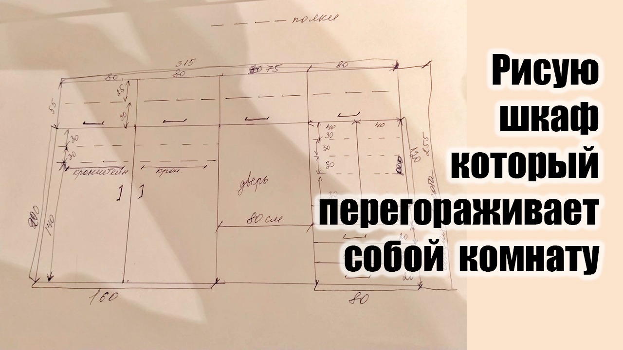 Рисую шкаф который будет перегораживать комнату