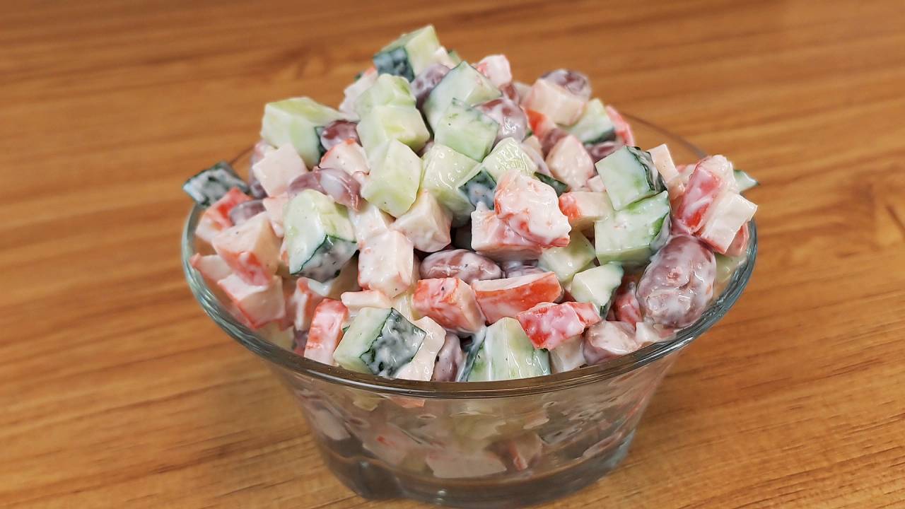 Ингредиенты к рецепту: 200 гр крабовых палочек 2 огурца 1 банка консервированной фасоли 2 ложки майонеза Соль черный перец Подписывайся на канал и делись видео с друзьями. Также у меня на канале еще очень много вкусных рецептов, и еще больше рецептов ждет вас впереди. Вконтакте - https://vk.com/vkusnierecipe Одноклассники - https://ok.ru/group/70000000861442 Дзен - https://dzen.ru/vkusnierecipes https://dzen.ru/isrecipe Весь музыкальный контент, использующийся в видео на данном канале размещён на основании лицензии Creative Commons 4.0 вариант лицензии CC0 (https://creativecommons.org/licenses/by/4.0/) с медиатеки, где не требуется указания авторства.