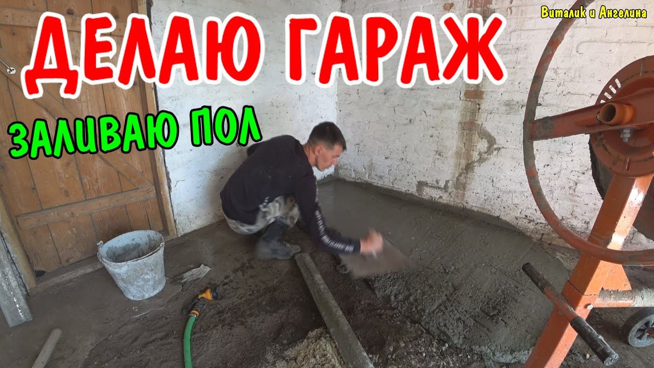 ЗАЛИВАЮ ПОЛЫ В ГАРАЖЕ / РЕМОНТ В ГАРАЖЕ / СТЯЖКА ПОЛА / ВИТАЛИК И АНГЕЛИНА