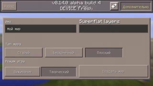 Скачать аддон/мод http://planet-mcpe.com/wp-content/uploads/2016/02/flatlayersgui.v2.apk Скачать Minecraft PE 0.14.0.Build 7 http://trashbox.mobi/files30/557724/minecraft_-_pocket_edition_0_14_0_build_7.apk/ Скачать BlockLauncher http://planet-mcpe.com/wp-content/uploads/2016/01/MCPELauncherApp-release-beta.apk