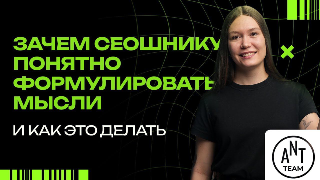 Зачем сеошнику понятно формулировать мысли и как это делать Хорошие коммуникативные навыки — залог успеха SEO-специалиста. Но, к сожалению, не все изначально умеют логично и грамотно выстраивать и излагать свои мысли с правильной аргументацией. Мы подготовили лекцию с ценными выжимками из полезных источников для тех, кто хочет быстро получить основную информацию, чтобы улучшить этот важный для работы навык. Для тех же, кто желает погрузиться в тему и узнать больше, мы подготовили список литературы. Ссылки: Карта Компетенций: https://docs.google.com/spreadsheets/d/1XOPAWAtLx9vBOJzzwPSGyYn7UEA0kAq6/edit# Тест к лекции: https://forms.gle/xNqg15oze84BrcAb6 Инфостиль: https://www.maximilyahov.ru/hello/ Наш telegram-канал: https://t.me/seoantteam Наш сайт - Ant-Team.ru Отправьте нам резюме: https://ant-team.ru/vakansii/ Полезная литература из лекции: "Пиши, сокращай" и "Ясно, понятно" - М. Ильяхов. "Договориться можно обо всем" - Г. Кеннеди. "Принцип пирамиды Минто" - Б. Минто. "Думай медленно, решай быстро" - Д. Канеман. "Как начать думать в понедельник и не перестать во вторник" - А. Петряков. "Гарри Поттер и методы рационального мышления" - Э. Юдковский. Содержание: 00:00 - Вступление 00:45 - О чем будет видео 01:14 - Зачем сеошнику правильно формулировать мысли 02:13 - С какими сложностями можно столкнуться в общении 02:45 - Почему сеошнику важно уметь общаться: разбираем Васю и Петю 03:52 - Коммуникативные навыки в Карте компетенций 04:04 - Для чего эта лекция 04:49 - Как прокачать коммуникативные навыки 06:00 - Понимание цели общения 06:25 - Почему я именно сейчас инициирую общение 07:12 - Определите ценность человека, к которому обращаетесь 08:01 - Что я хочу получить от общения 09:11 - Формулируй кратко, но емко 09:53 - Полезное упражнение 11:06 - Инфостиль: основы, применение 14:18 - Книги по инфостилю 14:52 - Что важно знать об инфостиле сеошнику: выжимки из книг 15:51 - Еще одно полезное упражнение. Прокачка устной речи. 17:27 - Принцип пирамиды Минто 18:55 - Пример использования пирамиды Минто 20:59 - Договориться можно обо всём 22:40 - Когнитивные искажения и ошибки мышления 23:48 - Книги по когнитивным искажениям и рациональному мышлению 25:05 - Немного об ошибках восприятия 32:14 - Итоги