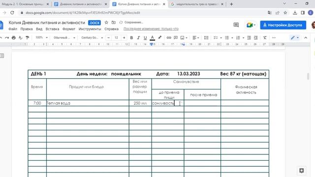 Как заполнить дневник питания на компьютере
