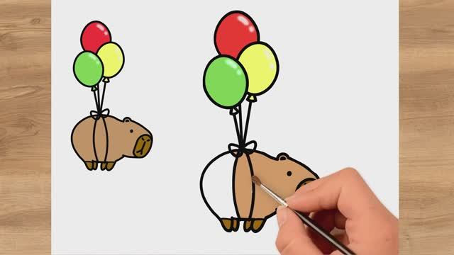 Как нарисовать милые воздушные шары с капибарой