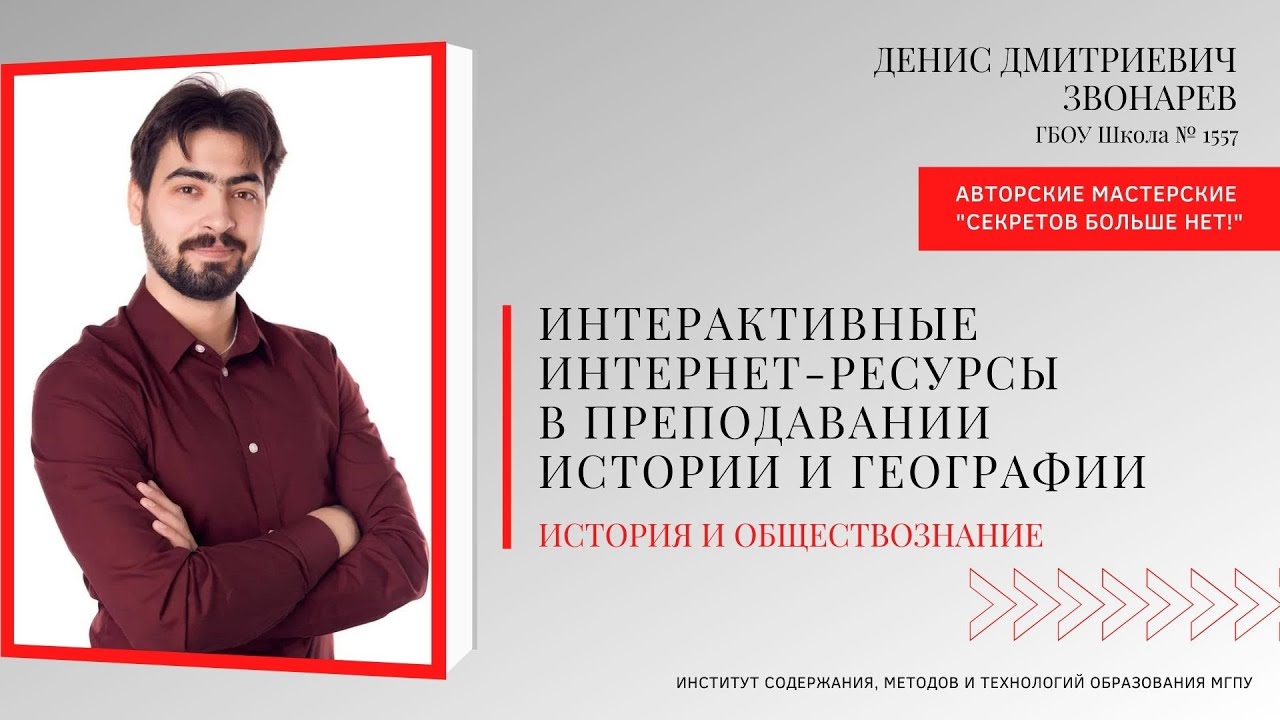 Ведущий: Звонарев Денис Дмитриевич, учитель истории и обществознания ГБОУ Школа 1557 Тема: "Интерактивные интернет-ресурсы в преподавании истории и географии"