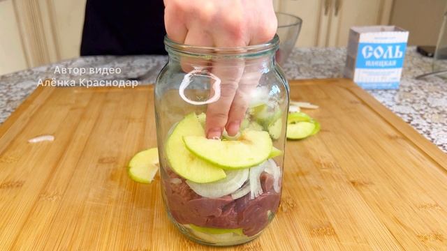 Куриная печень с яблоками в банке Приготовьте, это очень вкусно Ингредиенты: Печень куриная - 600 г Лук - 2 шт Яблоко - 2 шт Соль и чёрный перец - по вкусу Сливочное масло - 30 г Готовить 35 минут при 180 градусах. Банку нужно ставить в холодную духовку! Мои подписчики самые лучшие! Мира в