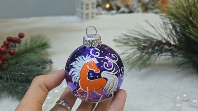 https://www.morozko-shop.ru/ Ёлочный шар ЗОДИАК: ЛОШАДКА НИКА, стекло, фиолетовый, 60 мм, С29-лош-4-фиол