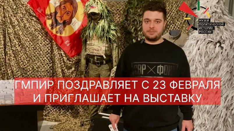 Заведующий научно-просветительским отделом Музея политической истории России Алексей Голдовский от лица всего коллектива поздравляет мужчин с Днём Защитника Отечества и приглашает посетить выставку «Уроки мужества. Герои спецоперации», открывшуюся несколько дней назад. Он также анонсирует новую акцию, по условиям которой любой гость нашего музея может до конца 2025 года повторно прийти на временные выставки всего за 100 рублей.