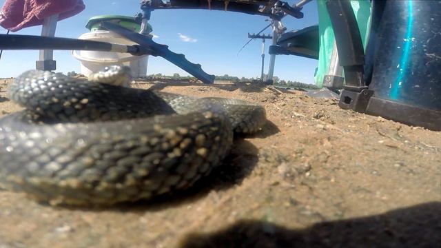 Во время рыбалки я бросал под ноги в воду горсточки прикормки, которая привлекла к моим ногам огромную стаю малька. Эта стайка привлекла проплывающего мимо ужа. Моё присутствие явно мешало ужу поохотится. И он попытался с помощью угрожающих поз и выпадов прогнать меня с насиженного местечка. А потом вступил в бой с экшн камерой. Лишь минут через пять после безуспешных атак на пластикового соперника ужик отступил , но при этом с очень гордым видом и не считая себя побеждённым...