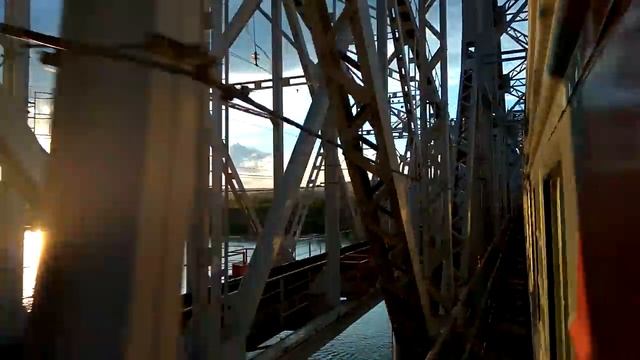 Александровский железнодорожный мост через Волгу вид из окна закат в Самарской области