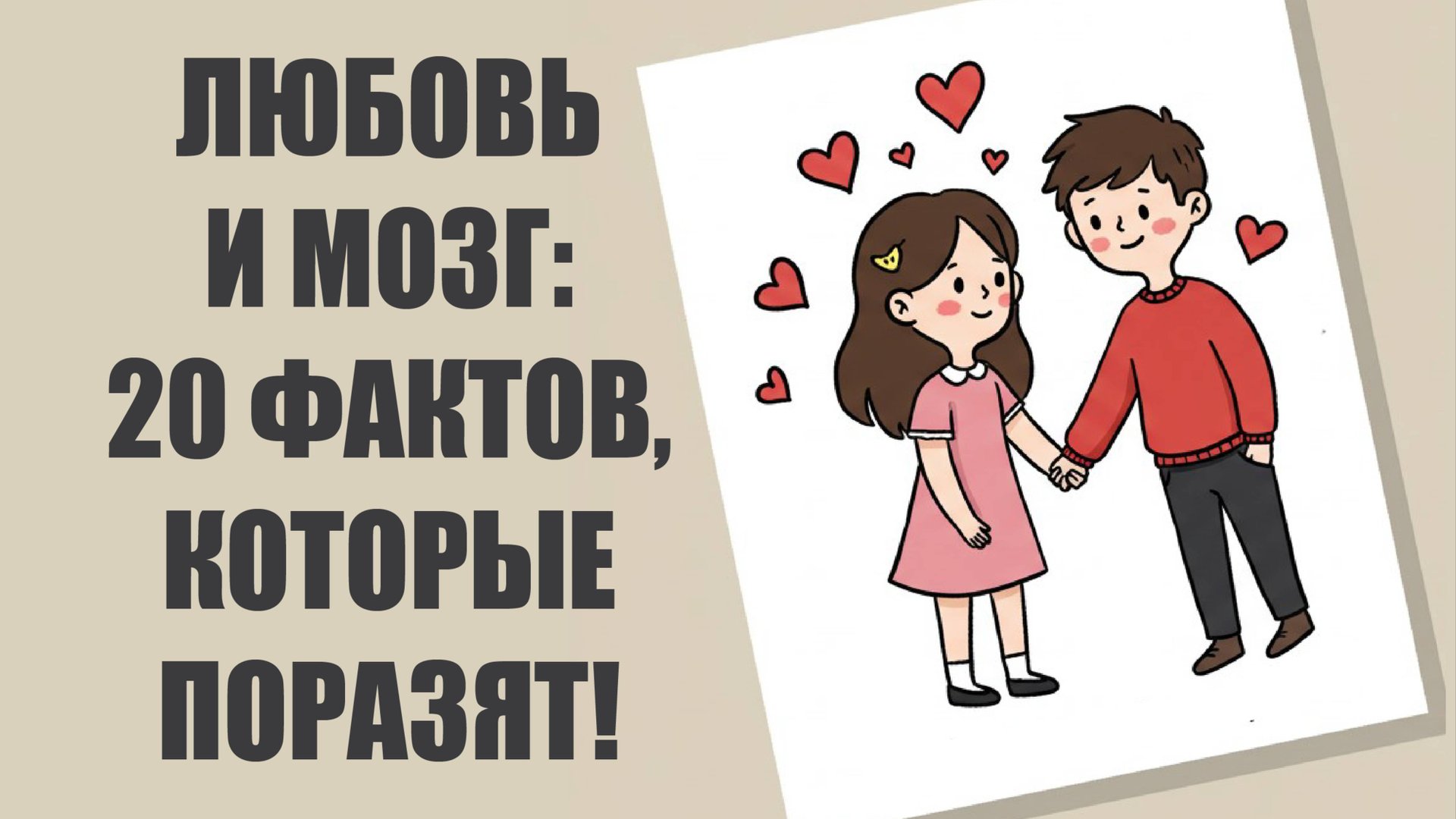 Любовь — это не просто чувство. Это целая химическая буря, которая меняет наш мозг, влияет на поведение и даже может облегчить боль! 😮 В этом видео вы узнаете 20 удивительных и научно подтверждённых фактов о том, как любовь влияет на наш мозг — от "бабочек в животе" до реального воздействия на продолжительность жизни. 🔬 Почему любовь может вызывать зависимость? ❤️ Как мозг различает страсть и привязанность? 🧠 Почему разбитое сердце действительно может "болеть"? Если вам интересна психология, эмоции и то, как работает наш мозг — это видео обязательно вас удивит. Не забудьте подписаться, чтобы не пропустить другие видео о психологии и человеческом поведении! #Любовь #Психология #ФактыОЛюбви #Мозг #ХимияЛюбви #ПсихологияОтношений #Нейробиология #ИнтересныеФакты