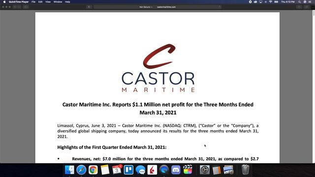 CTRM Stock (Castor Maritime) | Price Predictions | Financial Results AND What This Means! 📊📊 Join the Discord Community | ➡️ https://www.patreon.com/AndreInvests for real-time updates on the 10k Challenge and exclusive content! Timestamps Below: 00:08 - Disclaimer 00:29 - Agenda 01:29 - Financial results review 04:44 - Thoughts from CEO 06:01 - Technical analysis & price predictions 08:05 - Short interest update 09:12 - Final thoughts Follow me on Instagram - http://bit.ly/AndreInvestIG Follow me on Twitter - http://bit.ly/AndreInvestTW Subscribe to the channel - https://bit.ly/AndreInvestYouTube #ctrm #ctrmstock #castormaritime DISCLAIMER: I am not a financial advisor. These videos are for educational purposes only. Investing of any kind involves risk. Your investments are solely your responsibility and we do not provide personalized investment advice. It is crucial that you conduct your own research. I am merely sharing my opinion with no guarantee of gains or losses on investments. Please consult your financial or tax professional prior to making an investment.