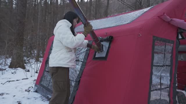 КИРИН CHRISTMAS CAMPING IN A SNOWY FIELD WITH AIR TENT