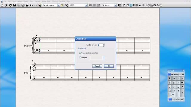 7 Добавление тактов в программе Сибелиус