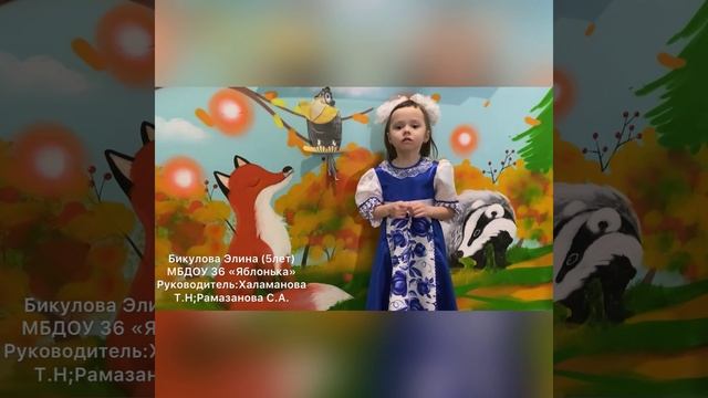 Бикулова Элина 5 лет, басня «Ворона и Лисица»