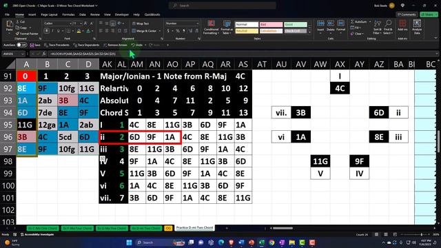 Open Chords - C Major Scale – D Minor Two Chord Worksheet Guitar & Excel