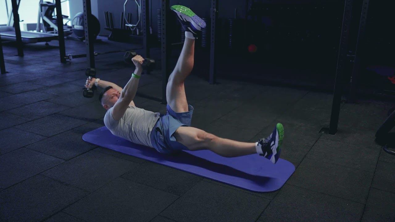 Мертвый жук с гантелями/Dual DB dead bug