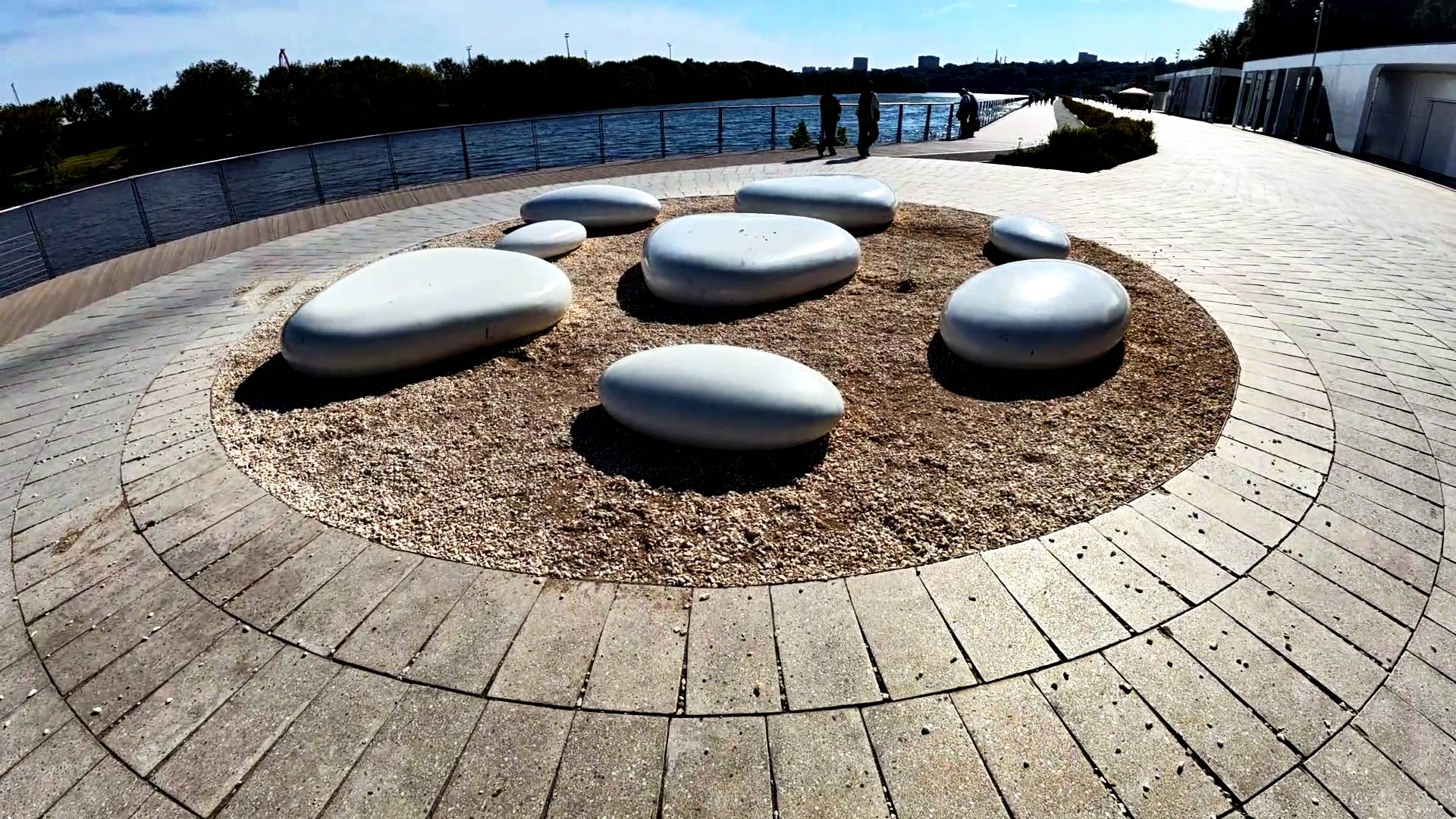 Москва. Музей-заповедник Коломенское. Набережная Москвы-реки. Ветрено. Искусственный водопад.