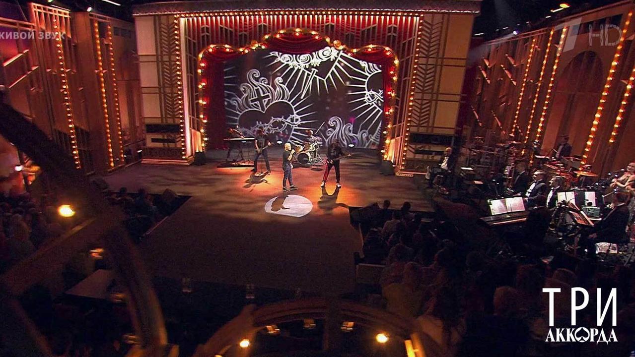 «Три аккорда» – музыкальный проект «Первого канала». Шоу охватывает все многообразие жанров отечественной музыки, не очерченной рамками поп-, рок-эстрады или классики. Выпуски шоу посвящены городскому романсу, авторской песне, киношлягерам, творчеству русской эмиграции XX века. Каждый выпуск «Трех аккордов» – это тематические концерты, в которых исполнители представляют на суд зрителей собственные интерпретации знаменитых хитов. Десять участников шоу, большинство из которых в своей жизни никогда не пересекались с жанром «шансон», попытаются придать неожиданное звучание известным и любимым песням. За победу в третьем сезоне поборются: Ирина Апексимова, Ева Польна, Алена Свиридова, Мариам Мерабова, Анастасия Макеева, Александр Шоуа, Дмитрий Певцов, Игорь Саруханов, Дмитрий Дюжев, Ярослав Сумишевский. Специальные гости выпуска - Олег Газманов и Михаил Бублик.