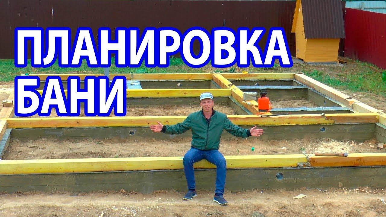 ПЛАНИРОВКА бани 9,5 х 7,2. Начальный этап строительства. ФУНДАМЕНТ для бани и ОБВЯЗОЧНЫЙ БРУС.