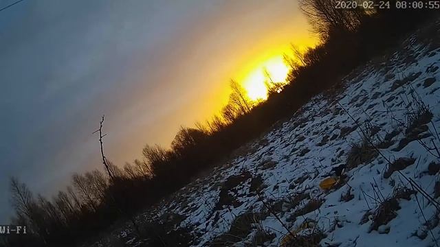 Три ночи в деревне ставили видеоловушки (Wi-Fi видеокамера) на диких животных. Ни кого кроме сорок не засняли. Но засняли красивый восход солнца.