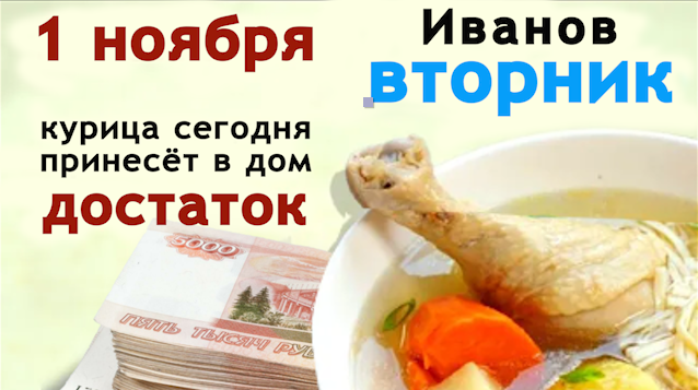 1 ноября - день святого Садока и день Иоанна. Сегодня готовят наваристые куриные супы и пекут пироги из курицы. В этот день молились за усопших и особенно за тех, кто не успел покаяться перед смертью. Сегодня кормят птиц, и просят достатка в дом. В этом видео я расскажу как избавиться от болезней. Расскажу об именинниках, о лунном и о солнечном календаре на 1 ноября, о том как привлечь деньги и что нельзя делать по вторникам. Дорогие мои зрители, всем приятного просмотра. Для ритуалов на достаток. "Иванов день меня благодатью наполняет, а мой кошелек от богатства растет." "Деньги в народ отпускаю, себя денежной силой наполняю. Пусть Иванов день богатство прибавляет и людям помогает." Заговор на монетку-талисман. "Моя денежная удача крепка, как металл, а богатства велики, всегда со мной, всегда при мне. Так оно и есть." Утренний заговор на желание. "Как задумаю - так всё и исполнится, жизнь моя добром наполнится." Молитва перед уборкой. "Пресвятая Богородица, прошу тебя, помоги мне сделать мой дом лучше, очисти его от всех ненужных воздействий и загрязнений. Прошу тебя, пусть в моем доме звучат только добрые слова, детский смех, пусть будет радость и счастье." Молитва архангелу Гавриилу. "Святой Архангел Гавриил, подари мне радость, отгони из жизни моей печали, наполни сердце моё любовью и трепетом. Благослови на подвиги и добрые свершения. Защити меня от лукавого да не оставь меня в одиночестве на пути к свету и истинной вере. Да простит Господь мою душу. Аминь."