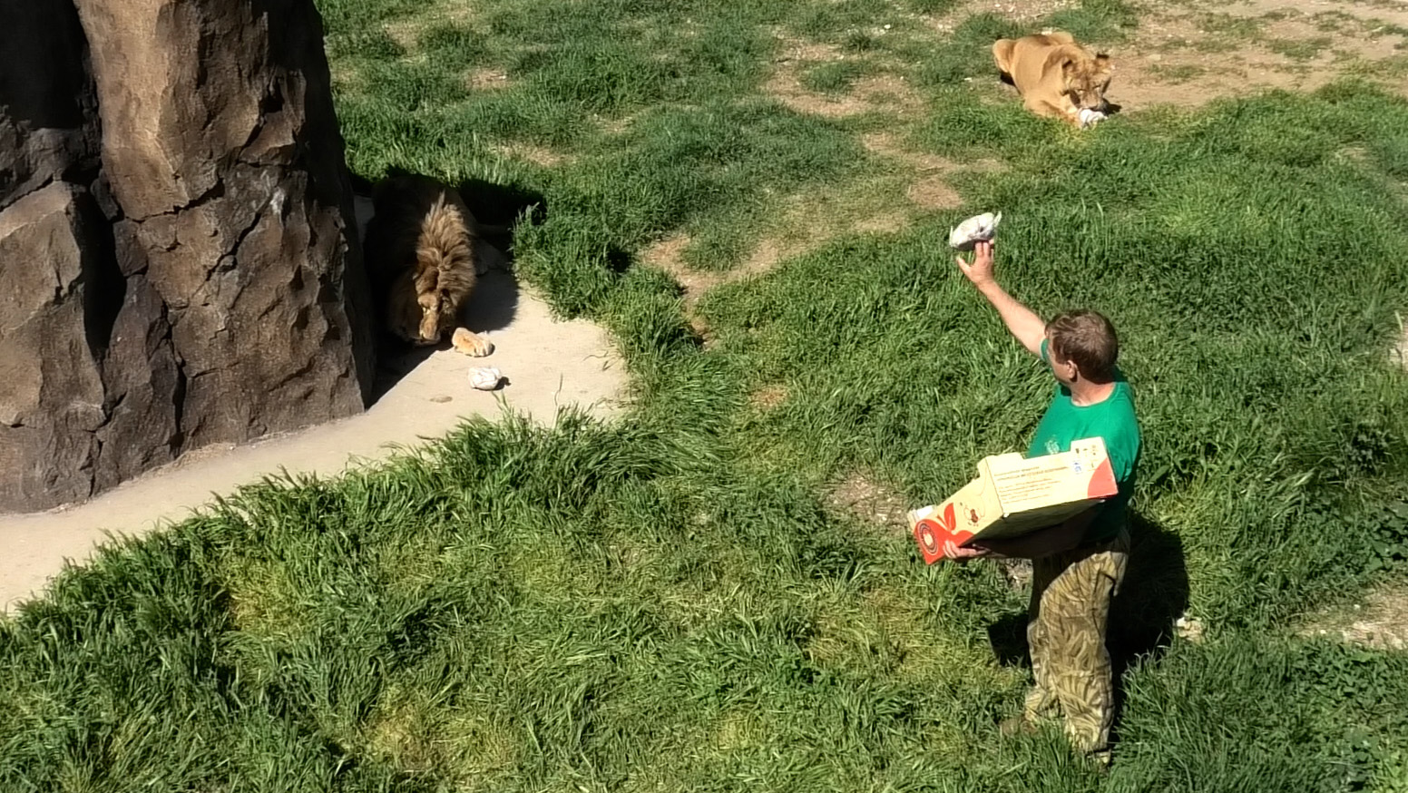 Успеть раскидать львам кур и вовремя сделать ноги! Опасненько! Тайган