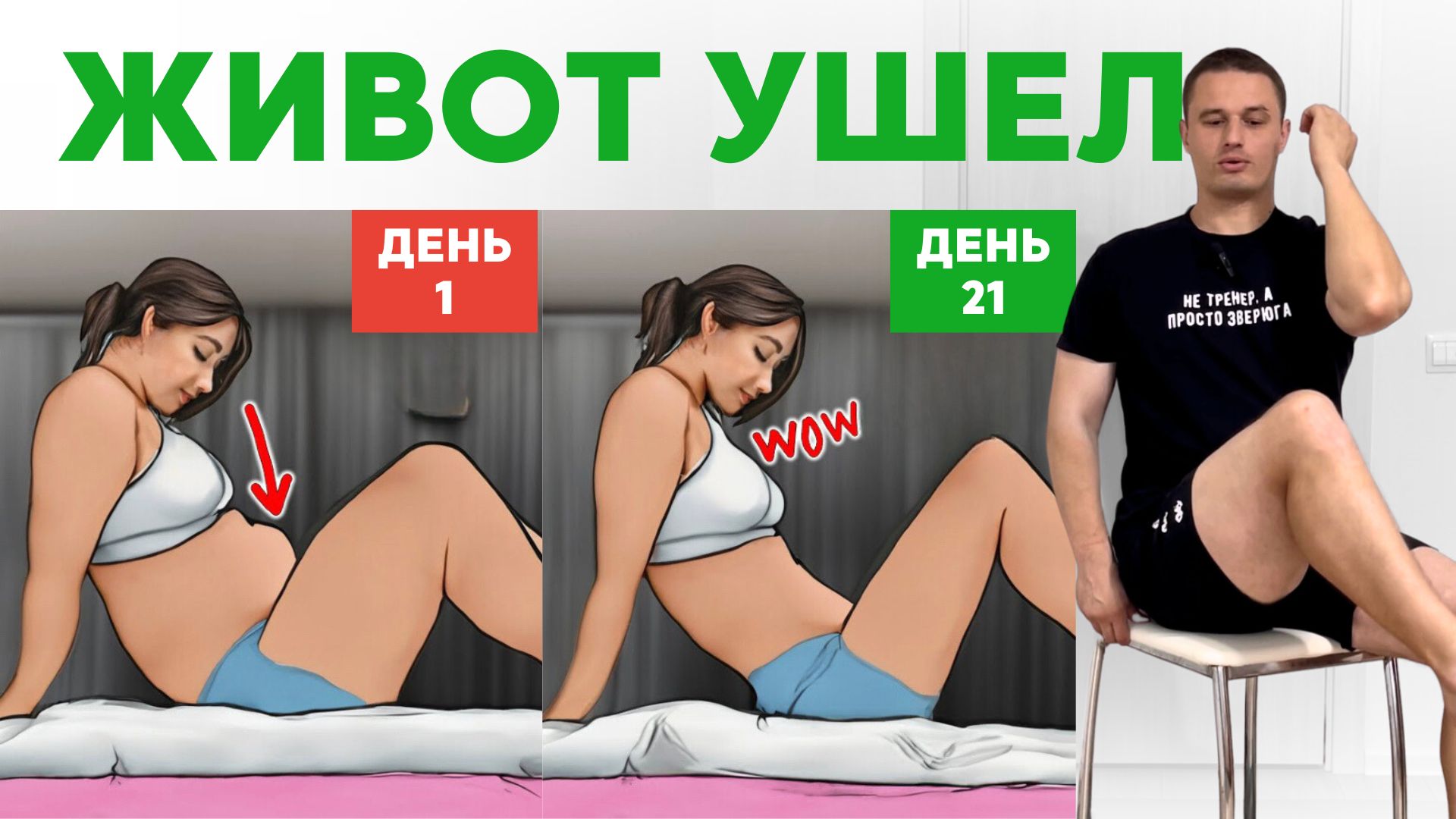 Большой ЖИВОТ СДУЕТСЯ и появится ТАЛИЯ: это можно сделать даже сидя на стуле, дома или на работе