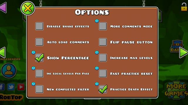 Вот как включить проценты в geometry dash