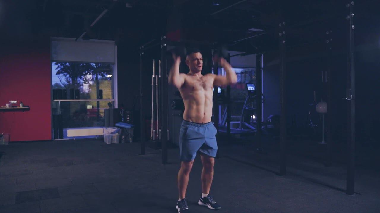Взятие двух гантелей и толчковый швунг/ Dual DB clean and jerk