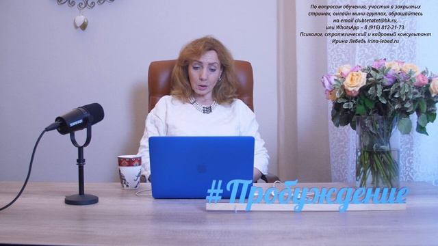 ➤ Ирина Лебедь - психолог, стратегический консультант. Опыт работы в области практической психологии – более 25 лет. ➤ Официальный сайт психолога Ирины Лебедь - http://www.irina-lebed.ru/ ➤ Видеосеминары Ирины Лебедь - http://www.irina-lebed.ru/obuchenie/ ✆ Как ещё можно с нами связаться: ✦Skype: irina.tetatet ✦Email: clubtetatet@bk.ru ✦WhatsApp: +7 (916) 812-21-73 ✦Telegram: https://t.me/masterskaya_probuzhdenie ✦Facebook: https://www.facebook.com/club.tetatet ✦ВК: https://vk.com/club38480683 ✦Twitter: https://twitter.com/Clubtetatet ✦ЖЖ: https://lirina.livejournal.com/ ✦YouTube канал: https://www.youtube.com/user/clubtetatet/featured ✒ По вопросам приобретения занятий и видеосеминаров Ирины Лебедь оставляйте заявки на почту: clubtetatet@bk.ru ➤ Проект ПРОБУЖДЕНИЕ рассчитан на год. За этот период: мы обретаем способность управлять собственной жизнью; - учимся распознавать, классифицировать людей по их природе, действиям, словам; - выстраиваем честные и понятные отношения; - ставим правильно цели и достигаем их в кратчайшие сроки; - уходим от программной судьбы, понимаем, что происходит вокруг и знаем, что со всем этим делать. ➤ За подробностями и условиями участия в проекте обращайтесь на почту clubtetatet@bk.ru. ✒ Запись на презентационную Skype-встречу о проекте также производится по почте clubtetatet@bk.ru или WhatsApp: +7 (916) 812-21-73 ➤ Презентация проекта "Пробуждение" и краткое содержание: https://youtu.be/Tu88Jxr_-dw ➤ Презентация обучения в мини-группе на проекте: https://youtu.be/F6GDigC9uUY ➤ Описание и содержание занятий: https://irina-lebed.ru/proekt-probuzhdenie/ ➤ ПЛЕЙЛИСТЫ по группам видео: 0. Презентации программ, семинаров и проектов: https://youtube.com/playlist?list=PLEISaR6AjsIg-Wo5iOnoPqq_KC17GF2VS 1. Секреты счастливых отношений:https://youtube.com/playlist?list=PLEISaR6AjsIhRJmAtlCPS_bEVzaYQN4L1 2. Муж и жена. Семья и отношения в ней: https://youtube.com/playlist?list=PLEISaR6AjsIifKYoxBt6hIDG2H0E83Dxu 3. Отношения с матерью: https://youtube.com/playlist?list=PLEISaR6AjsIivB5UcLfVyCFk594Z9cIC5 4. Отношения с отцом: https://youtube.com/playlist?list=PLEISaR6AjsIjktuBOZ9X8oTwQDQwQhpMJ 5. Страхи. Как перестать бояться?: https://youtube.com/playlist?list=PLEISaR6AjsIhRJmAtlCPS_bEVzaYQN4L1 6.Уверенность и самооценка: https://youtube.com/playlist?list=PLEISaR6AjsIiOLUwtqkDER6V6VJ1w5IRL 7. Мышления и убеждения. Как изменить: https://youtube.com/playlist?list=PLEISaR6AjsIjEjFD4qP__xLnvHdri77z2 8. Деньги и достаток: https://youtube.com/playlist?list=PLEISaR6AjsIheomC7eHNSiSGvzxEBiqrC 9. Как достичь желаемого: https://youtube.com/playlist?list=PLEISaR6AjsIinCh0w4NNspoPvNAok6mHx 10. Фрагменты проекта "Пробуждение": https://youtube.com/playlist?list=PLEISaR6AjsIgbe-vfZUVE8nHzwEyJGa8r 11. Презентации занятий проекта "Пробуждение": https://youtube.com/playlist?list=PLEISaR6AjsIipxPpRrCDmZwzX42MHESjB 12. Публичные консультации: https://youtube.com/playlist?list=PLEISaR6AjsIgktWzUVWeal5hcLS989dFe А также: "Как изменить привычки", "Прошлое, настоящее и будущее", "Как обрести силу", "Как достичь цели", "Психология стройности", "Женственность и женская природа", "Управление эмоциями, личные границы", "Как принять и поверить в себя", "Стримы", "Ответы на вопросы","Отношения со свекровью", "Семинары" и другие. Позвольте себе жить! #проектпробуждение #пробуждение #баланс #психологириналебедь #психолог