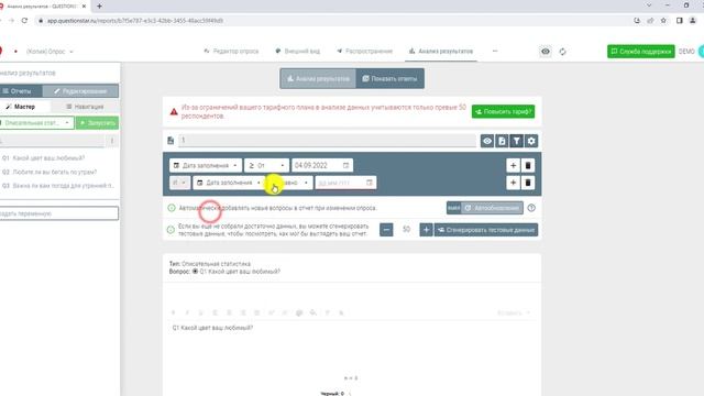 Выбор данных для просмотра в отчетах