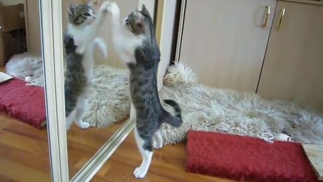 Котяра чистит зеркало