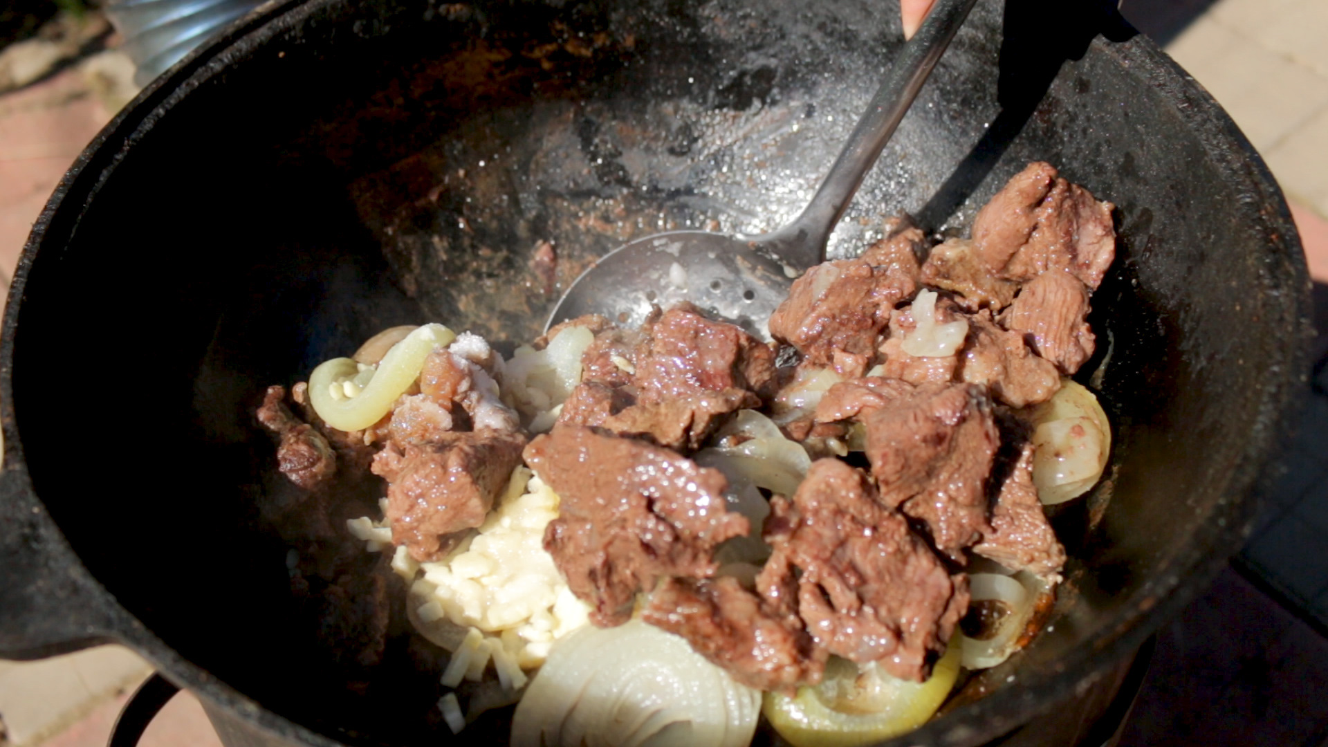 Говядина в казане на костре