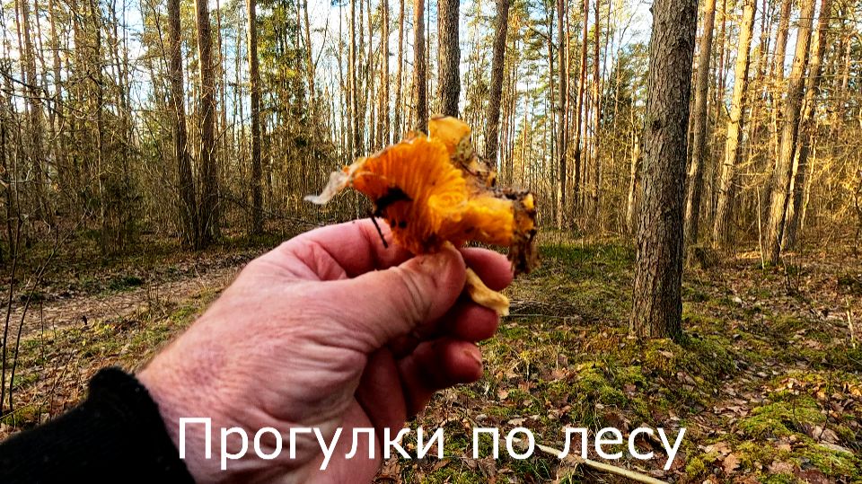 27.12.2025. Гуляю по мховому лесу. Рассказал, как на такую погоду реагируют мои две кошки. Нашел одну замерзшую лисичку. Я не удивился, лисички не гниют, и зимой во время большой оттепели их можно найти. Но это будут штучные экземпляры. В прошлом году я их собирал. Они вполне съедобные. Латвия, центральная часть, 32 км на юг от Риги. #прогулки_по_лесу