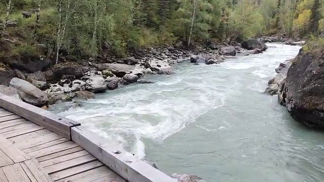 Магия Алтая: туристы на мосту над бурной рекой 🌊🏔️