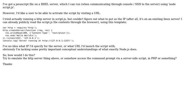 DevOps & SysAdmins: Run a Javascript file (server-side, using Node.js) from the browser / internet
