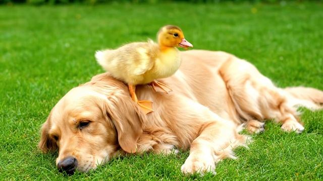 Утёнок не дает собакн поспать #милота #деревня #утята #собаки #утёнок #животные