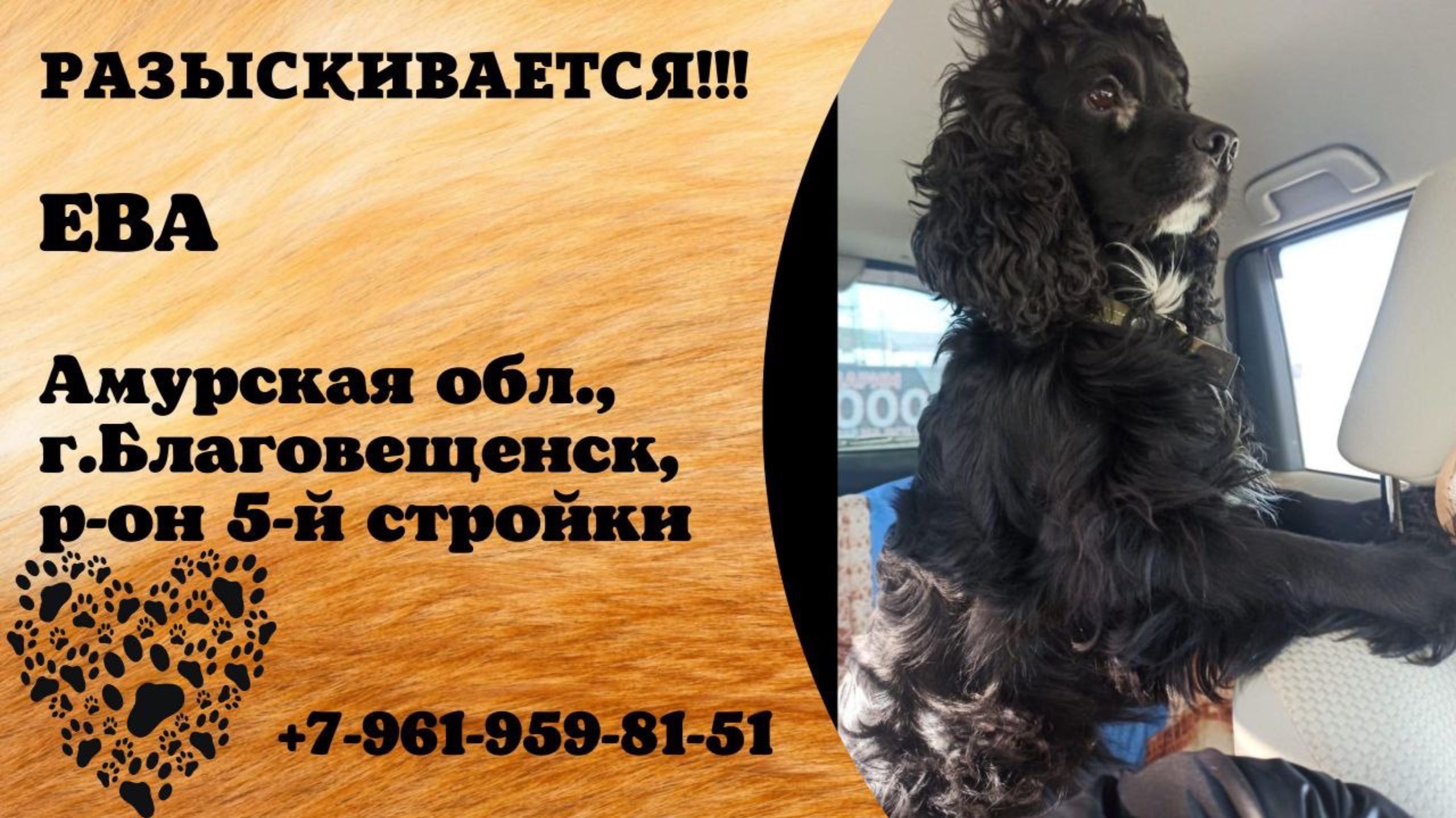 Амурская Благовещенск Пропала собака 27.07 пропала собака по кличке Ева в районе пятой стройки, возможно побежала в сторону садового Если найдите или увидите позвоните по номеру 89619598151 Инфо https://vk.com/wall-198815410_205190 #пропала_собака#благовещенск#амурская