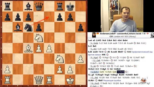 Шахматы. Anderssen Adolf - Loewenthal Johann Jacob London 1851 Гамбит Эванса №4. Обучение шахматам.