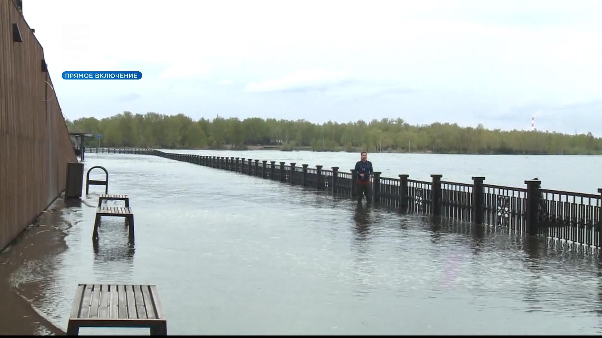 Енисей затопил нижний ярус красноярской набережной у музейного центра