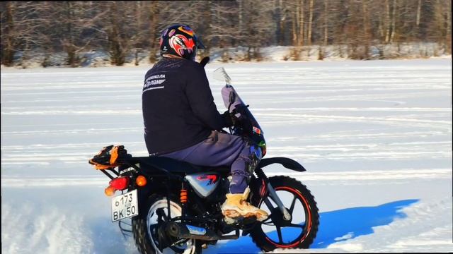 На мотоцикле по зимнему озеру. Bajaj Boxer по льду. Мотоспидвей