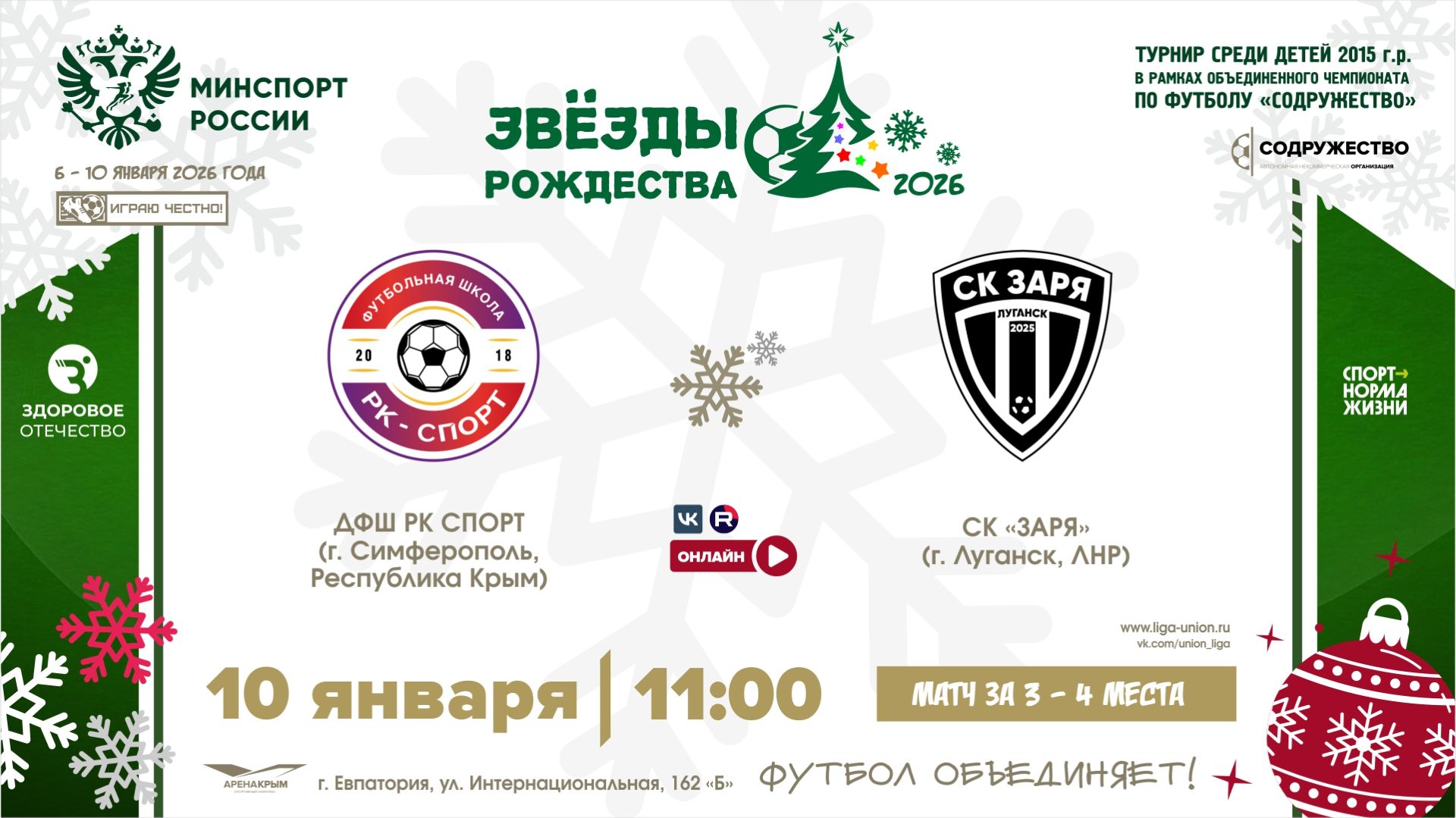 Матч за 3-е место | ДФШ «РК Спорт» (г. Симферополь, РК) - СК «Заря» (г. Луганск, ЛНР) | 10.01.2026 | 11:00