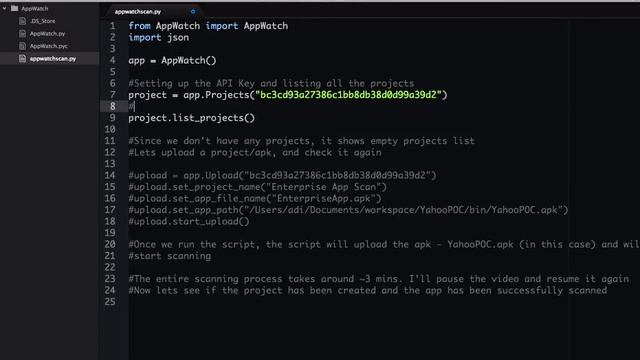 Video Illustration of how to use the AppWatch API . You can write scripts using the AppWatch API and build mobile security tools around it, or integrate it in your existing security product. Get AppWatch at http://attify.com/appwatch/ API Documentation : http://attify.com/appwatch/docs/apidoc.php