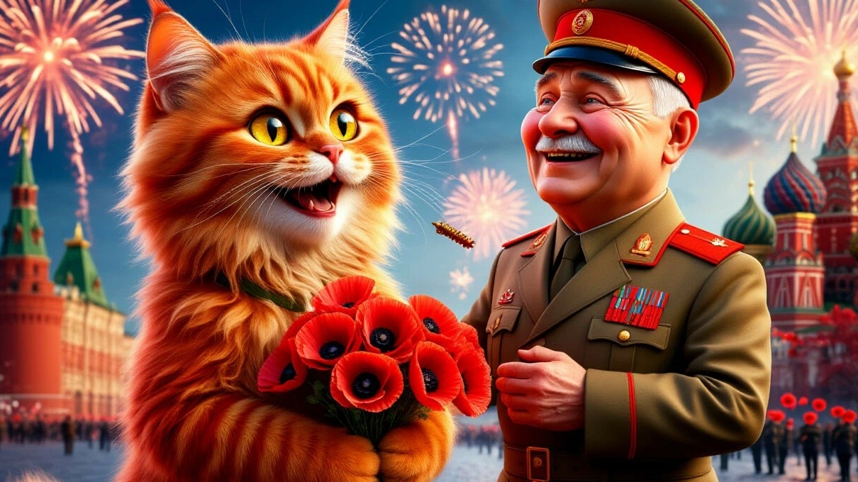 Классное видео о рыжем коте-259 выпуск: Рыжий кот всех поздравляет с Днём Победы!