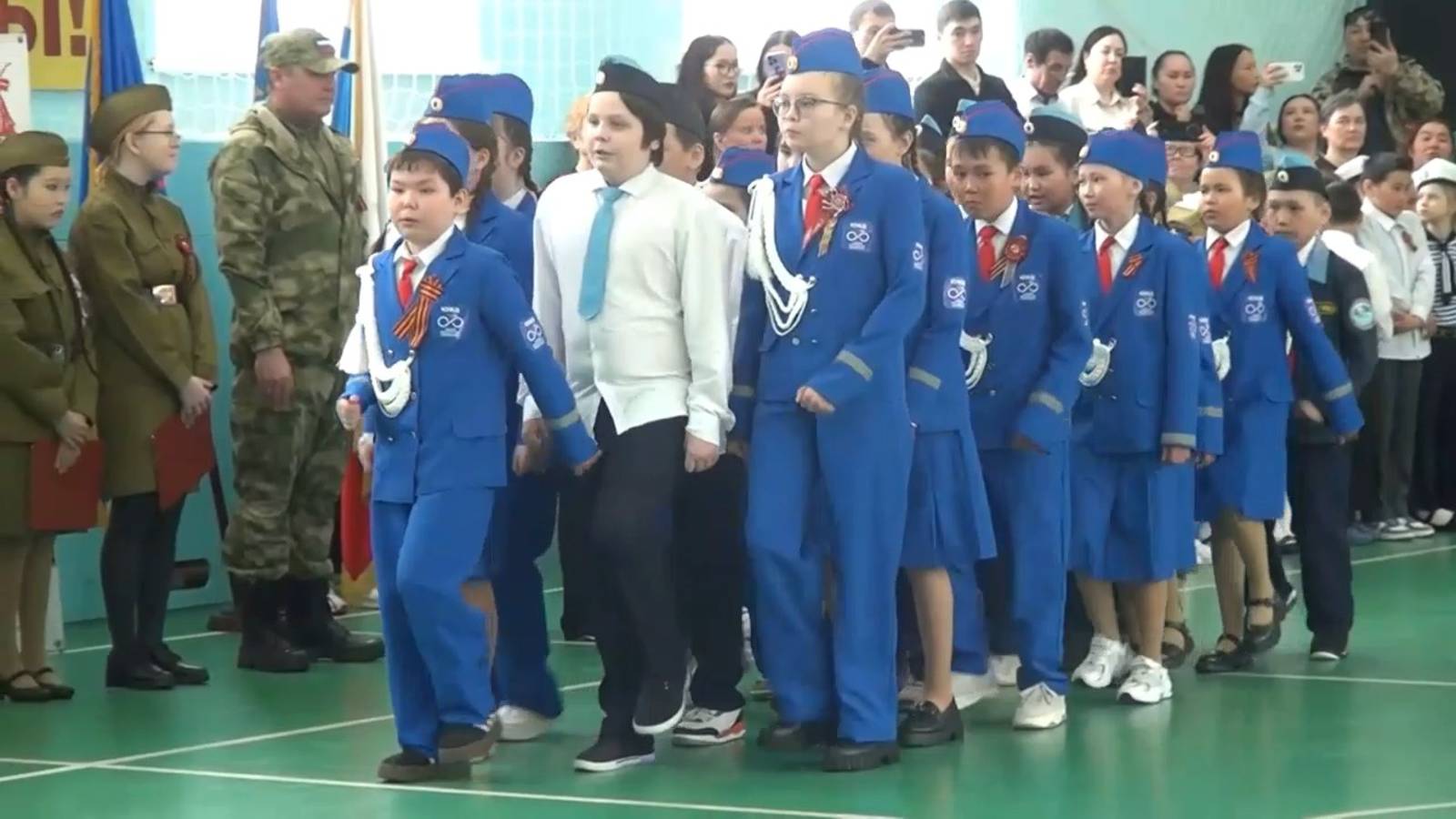 Прохождение парадным строем учащихся и сотрудников школы-интерната, работников МЦ "Север", д/с "Сказка", ветеранов труда, посвящённое 80-летию Победы в Великой Отечественной войне 1941-1945 годов 7 мая 2025 года