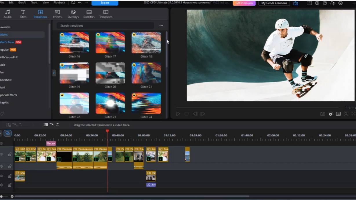 PowerDirector Ultimate версии 2026 предлагает множество новых функций. Улучшен пользовательский интерфейс. Переработана панель субтитров с расширенным форматированием текста и новыми шаблонами стилей. Кроме того, режим «Библиотека/редактирование» дополнен расширенной и оптимизированной панелью управления, что повышает эффективность рабочего процесса. Особого внимания заслуживает новая функция редактирования «Сдвиг» , которая позволяет автоматически заполнять пустые пространства после удаления ненужных отрезков клипов , без необходимости ручного выравнивания. Кроме того, функция настройки цвета HSL позволяет независимо корректировать оттенок, насыщенность и яркость для определённых цветовых диапазонов, например, оттенков кожи или неба прямо в окне предварительного просмотра.