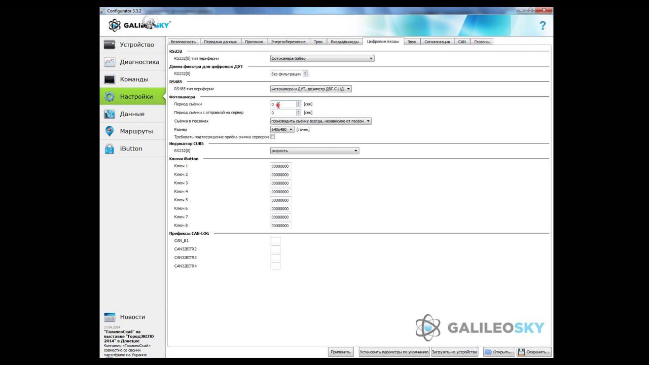 RS232, RS485. Подключение фотокамеры GalileoSky