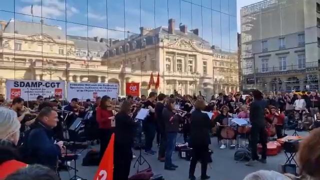 Культурная сторона протестов в Париже. Здание Конституционного совета играет симфонический оркестр