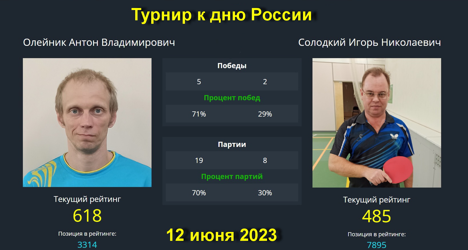 Встреча Олейник А.(618)-Солодкий И.(485). Турнир к дню России. 12 июня 2023