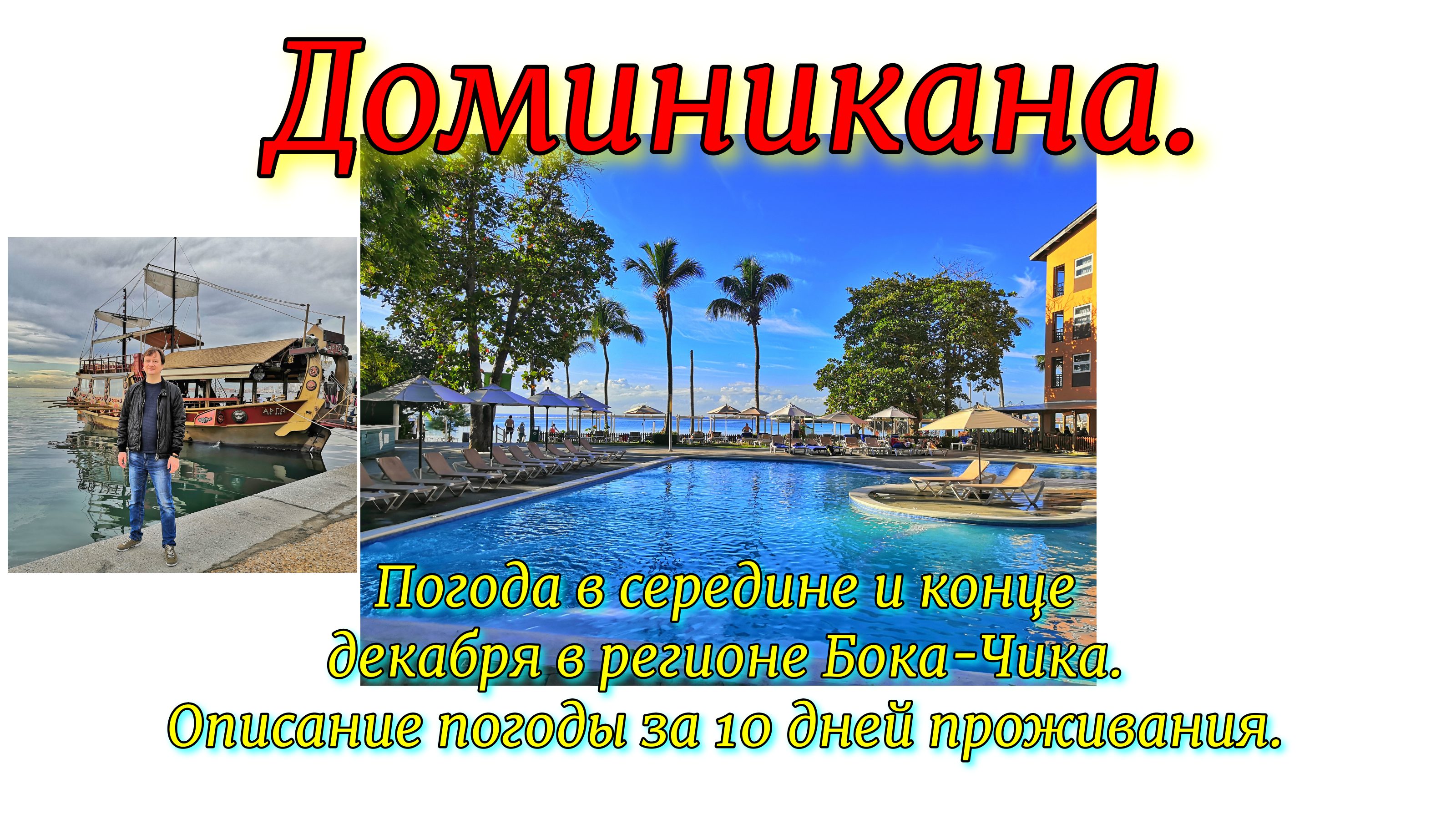 Расскажу в этом видео про такую важную составляющую отдыха на море как погоду. Я вот долго сомневался, выбирал, куда поехать в конце декабря на море. Изучал, где море теплее, где погода невыносимо жаркая, а где всё норм? Выбрали Доминикану, где сейчас мы и находимся на отдыхе. Для тех, кто выбирает или уже выбрал Доминикану в декабре, у кого отдых запланирован на конец декабря, но кто ещё не решил куда поехать в помощь это видео. Да, дожди идут, бывает, но море тёплое и солнечных часов больше. * Подробнее об этом смотрите в видео. Приятного просмотра! Это видео и другие публикации на моём канале в яндекс.дзен, «Про путешествия. Иван Матрёнин». Адрес в Дзене - https://zen.yandex.ru/travelblogger. Подписывайтесь на мой канал! Ссылка на это видео – https://zen.yandex.ru/video/watch/61c0dbe83a2445281985b271 * На моём канале в YouTube - ищите Travel blogger Ivan Matrenin. Ссылка на это видео - https://youtu.be/dOdASeEOB98
